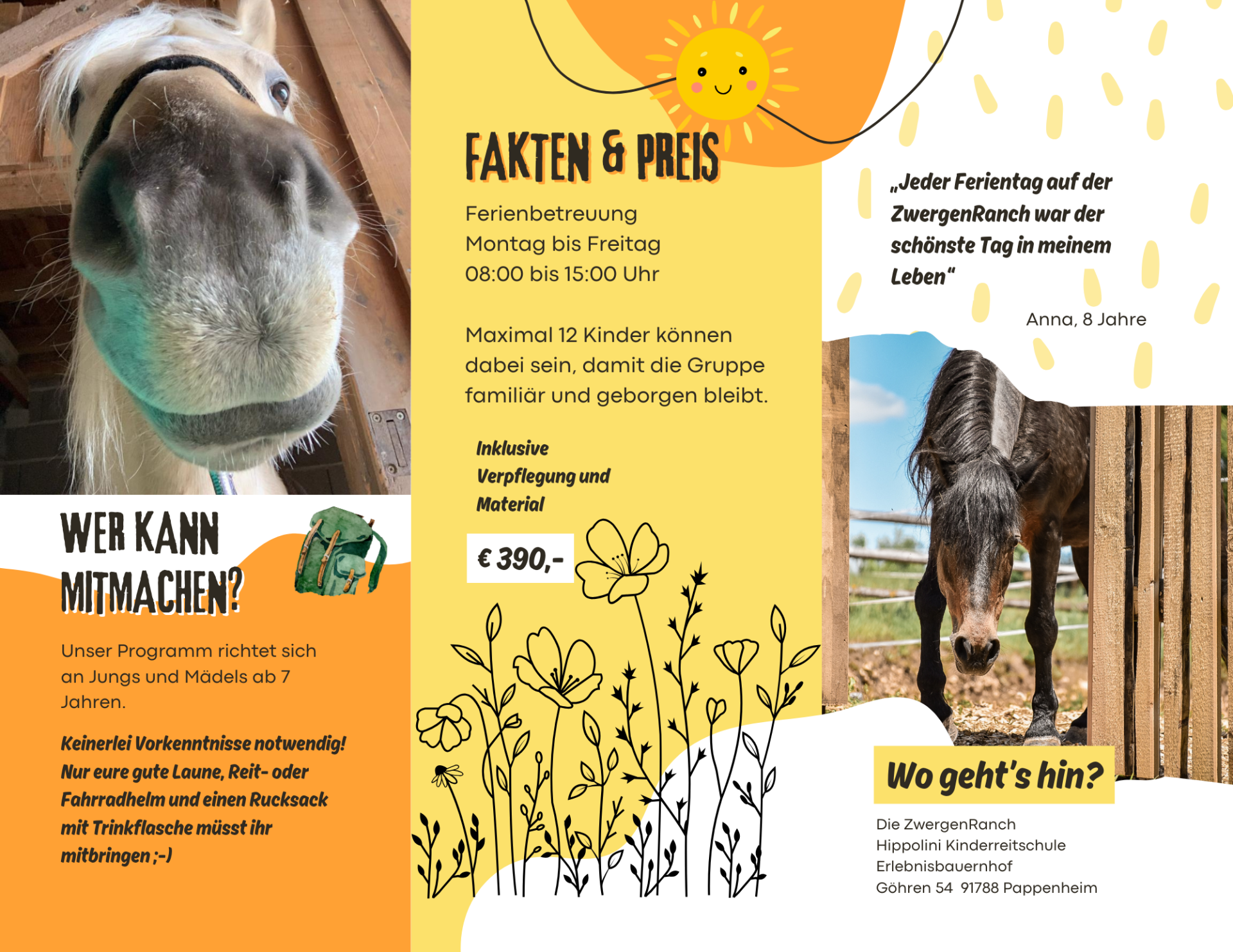 Wir frühstücken, spielen, basteln, reiten und kochen zusammen (natürlich nur, was auch allen schmeckt).